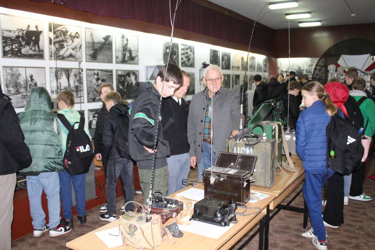 Również w czerwcu 2022 r. wystawę zwiedzali uczniowie Ogólnokształcącego Liceum Katolickiego. Była to lekcja historii prowadzona przez nauczyciela Liceum, również członka naszego Oddziału, Wiesława Bednarskiego. W czasie lekcji uczniowie mogli się dowiedzieć o historii jednostek wojskowych stacjonujących w Garnizonie Sieradz od czasu odzyskania niepodległości, a w szczególności jednostek łączności, które od czasu II wojny światowej stacjonują w naszym mieście. Młodzież szkolna mogła zobaczyć i dowiedzieć się o sprzęcie i wyposażeniu będącym na uzbrojeniu tych jednostek. Zgromadzono tu między innymi kilkadziesiąt eksponatów analogowego sprzętu łączności poczynając od polowych aparatów telefonicznych, a kończąc na radiostacjach i radioliniach operacyjnych oraz sprzęcie informatycznym. Była to niewątpliwie ciekawa i bardzo pouczająca żywa lekcja historii wojska i Polski.