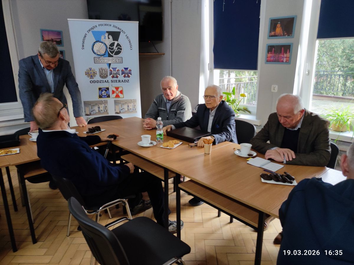 8 marca odbyło się zebranie członków Oddziału Sieradz Światowego Związku Polskich Żołnierzy Łączności. Miejscem spotkania była sala konferencyjna Muzeum Okręgowego w Sieradzu. W zebraniu uczestniczył również, jako gość honorowy dyrektor Muzeum Piotr Gutbier. Po powitaniu obecnych na zebraniu i przyjęciu porządku zebrania, prezes Oddziału kol. płk Jan Kowalski podziękował dyrektorowi Muzeum za dotychczasową współpracę w zakresie prowadzenia stałej wystawy historycznego sprzętu łączności i wręczył dyplom uznania. Dyrektor Muzeum w swoim krótkim wystąpieniu podziękował za słowa uznania, wysoko ocenił działalność Oddziału w zakresie prowadzenia wystawy i deklarował dalszą współpracę. W dalszej części zebrania z sympatią powitany został nowy członek Oddziału kol. ppłk Jacek Kapuściarek, który przyjechał na zebranie z odległej miejscowości. Ważnym punktem zebrania było wręczenie legitymacji, odznak Związku i pamiątkowych książek nowoprzyjętym do Oddziału członków. Są to kol. ppłk Jerzy Sokołowski oraz kol. mjr Wiesław Bednarski. Kolejnym punktem zebrania było zapoznanie uczestników z dotychczasową działalnością Zarządu Oddziału oraz ze zmianami personalnymi w Zarządzie. W dalszym wystąpieniu prezes Oddziału przedstawił zmiany, jakie nastąpiły w sali muzealnej. Omówił nowe plansze, gabloty oraz eksponaty przekazane przez prezesa ZG ŚZPŻŁ kol. ppłk. Mieczysława Hucała. Poinformował również o opracowaniu nowego, czwartego wydania przewodnika po wystawie historycznego sprzętu łączności, który znajduje się już na stronie internetowej Oddziału. Na zakończenie tej części zebrania przedstawione zostały najbliższe zamierzenia Oddziału. Druga część zebrania odbywała się w Sali muzealnej. Wiceprezes Oddziału kol. płk Marek Lewandowski zaprezentował statuetkę, którą wyróżniony został Oddział przez prezesa ZG ŚZPŻŁ oraz odczytał treść pisma wyróżniającego. Końcową czynnością było krótkie zaprezentowanie zbiorów przez kol. ppłk. Tadeusza Miedziaka.